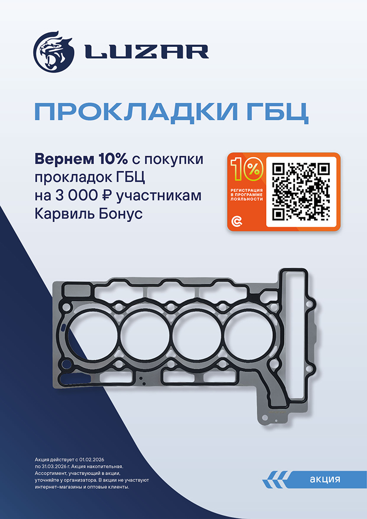 01.02 - 31.03.2026 Акция ПЛ Карвиль Бонус "Вернем 10% с покупки прокладок ГБЦ LUZAR на 3 000 ₽ участникам Карвиль Бонус "